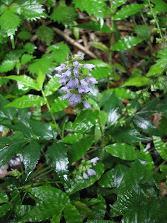 天気予報は曇り後晴れでしたが、筑波山は雲の中で全く見えません。湯袋峠から登り始めると、だんだん霧が深くなり、木からポタポタ雫が落ちてきますが、暑くなるのでカッパは着ないでスパッツだけにしました。しかし何箇所も笹藪を抜ける所が有り、ズボンがかなり濡れました。